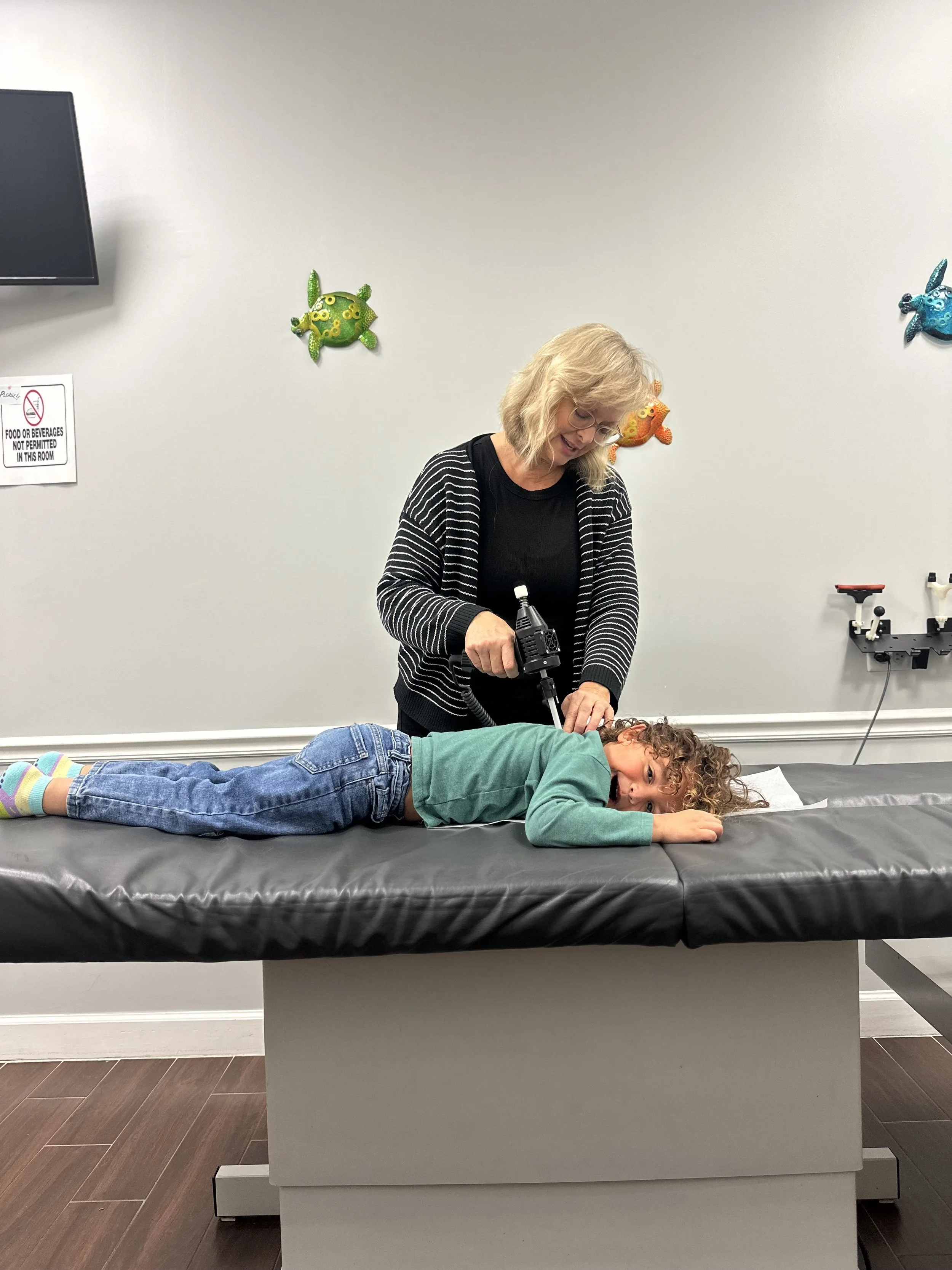 She primarily uses two gentle, instrument-based techniques: Activator Method and Koren Specific Technique (KST).